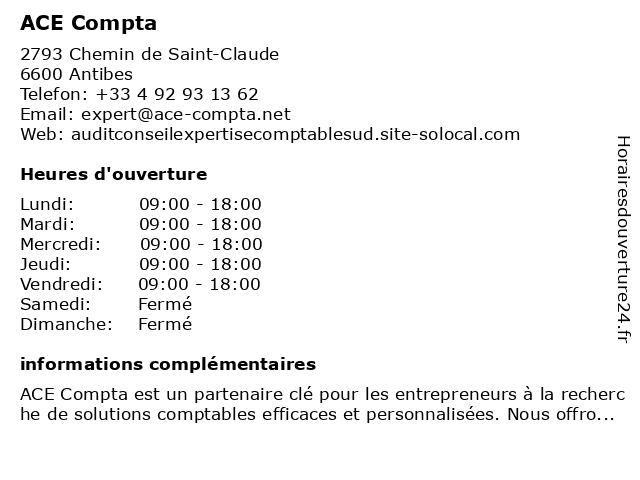1 CPC Cabinet Paca Compta (Distance: 0,04 km) 2208 Route de Grasse, 06600 Antibes cabinet, compta, cpc, paca 3 Ace Crédit Cagnes Sur Mer (Distance: 9,04 km) 87 Avenue de Nice, 06800 Cagnes-sur-Mer ace, cagnes, crédit, mer, sur 5 VSE Compta (Distance: 16,01 km) 28 Avenue de la Californie, 06200 Nice audit, compta, conseil, expertise comptable, fiscalité, juridique, paie, social, vse 6 Ace Crédit (Distance: 17,44 km) 63 rue de France, 06000 Nice ace, assurance, courtier, crédit, hypothèque, immobilier, investissement |