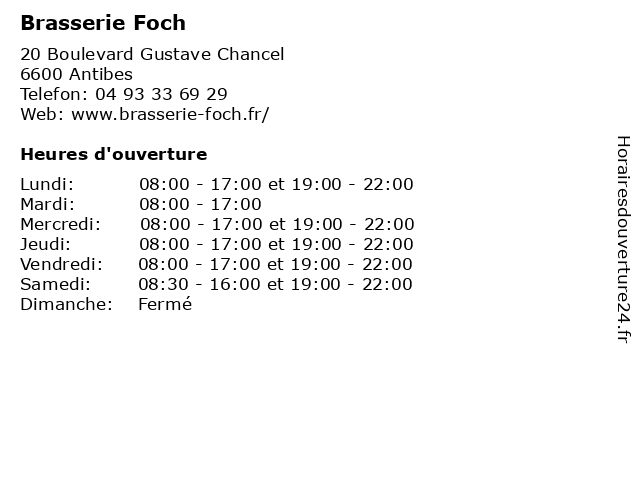 | Samedi | 08:30-16:00 et 19:00-22:00 |