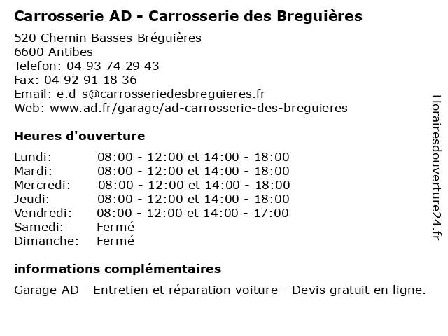 1 AD Auto Distribution (Distance: 0,01 km) 520 Basses Breguieres, 06600 Antibes ad, auto, automobiles, concessionnaire, distribution, garage, motos 2 Carrosserie de La Brague (Distance: 0,29 km) 94 Boulevard Beau Rivage Prolongé, 06600 Antibes brague, carrosserie, de, la 3 AD Auto Distribution (Distance: 0,92 km) 1650 Avenue Jules Grec, 06600 Antibes ad, auto, automobiles, concessionnaire, distribution, garage, motos 4 AD Auto Distribution (Distance: 1,14 km) 155 Allee Bellevue, 06600 Antibes ad, auto, automobiles, concessionnaire, distribution, garage, motos 5 AD Auto Distribution (Distance: 2,18 km) 155 Les Terries, 06600 Antibes ad, auto, automobiles, concessionnaire, distribution, garage, motos 6 Ford - Atelier de Carrosserie (Distance: 2,43 km) 2255 Chemin de Saint Claude, 06600 Antibes atelier, atelier de carrosserie, auto, car, carrosserie, de, financement, ford, ford entreprise, pièces et accessoires, véhicules d’occasion, véhicules neufs |