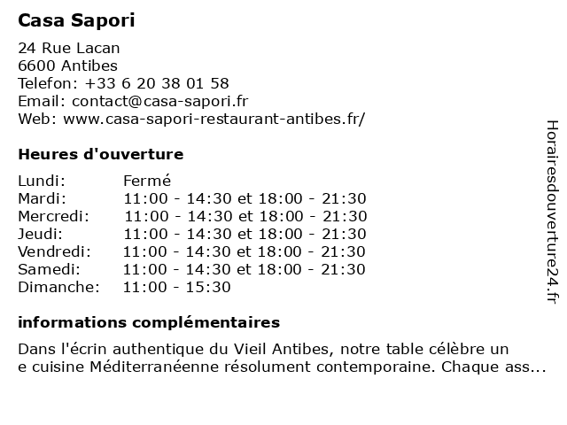 | Samedi | 11:00-14:30 et 18:00-21:30 |