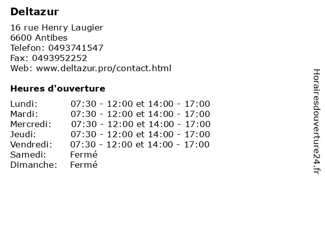 | Lundi | 07:30-12:00 et 14:00-17:00 |