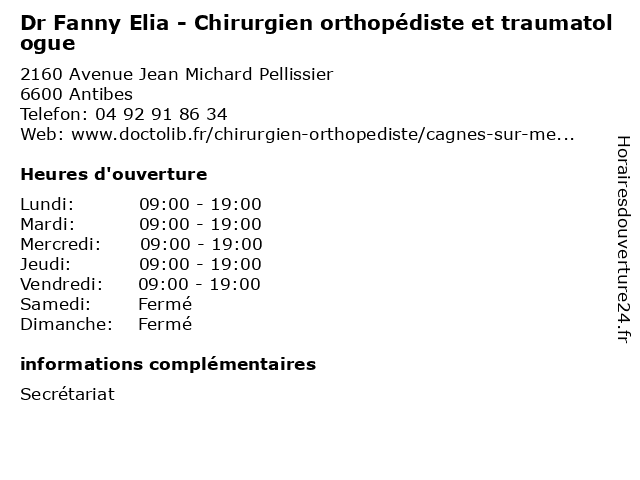 1 Dr Fanny Elia - Chirurgien orthopédiste et traumatologue (Distance: 6,21 km) 53 Avenue des Alpes, 06800 Cagnes-sur-Mer chirurgien, docteur, dr, elia, et, fanny, orthopédiste, sante, soins, traumatologue 2 Dr Khaled Bouacida - Chirurgien orthopédiste et traumatologue (Distance: nan km) 2160 avenue Jean Michard Pellissier, 06600 Antibes bouacida, chirurgie, chirurgien, dr, et, general, khaled, orthopédiste, soins, traumatologue 3 Dr Frédéric Damon - Chirurgien orthopédiste et traumatologue (Distance: nan km) 2160 Avenue Jean Michard Pellissier, 06600 Antibes chirurgie, chirurgien, damon, dr, et, frédéric, general, orthopédiste, soins, traumatologue 4 Dr Patrick Gendre - Chirurgien orthopédiste et traumatologue (Distance: 0,26 km) 160 Avenue Jean Michard Pellissier, 06600 Antibes chirurgien, dr, et, gendre, orthopedie, orthopédique, orthopédiste, patrick, trauma, traumatologie, traumatologique, traumatologue 5 Dr Ahmad Abou Daher - Chirurgien orthopédiste (Distance: 0,66 km) 107 Avenue de Nice, 06600 Antibes abou, ahmad, chirurgien, consultation, daher, docteur, dr, med, médecin, orthopédiste, traitement 6 Dr Michael Djian - Chirurgien orthopédiste (Distance: 0,66 km) 107 Avenue de Nice, 06600 Antibes chirurgien, consultation, djian, docteur, dr, med, michael, médecin, orthopédiste, traitement |