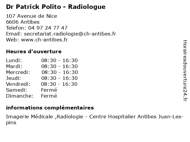 Termes de recherche pour Dr Patrick Polito - Radiologue:les, pins, patrick, biologie, centre, antibes, juan, hospitalier, dr, biochimie, radiologue, analyse, polito, biochismiste |