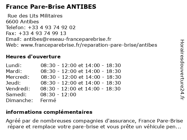 | Lundi | 08:30-12:00 et 14:00-18:30 |