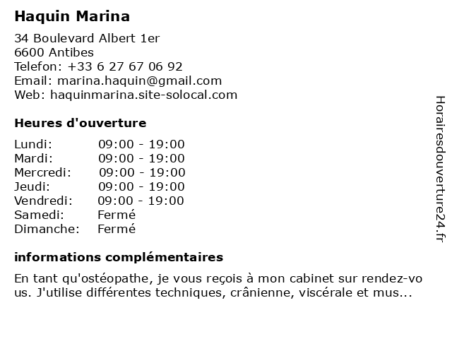 1 San Marina (Distance: 1,80 km) . Chemin de saint Claude, 06600 Antibes bijoux, chaussures, marina, maroquinerie, mode, sacs, san 3 Avenir Marina (Distance: 4,10 km) Cellule 53 Port Vallauris Golfe Juan, 06220 Vallauris avenir, marina, restaurants 4 Cabinet d’ostéopathie de la Marina (Distance: 6,04 km) 1434 Avenue de la Batterie, 06270 Villeneuve-Loubet cabinet, cervicalgie, de, dorsalgie, d’ostéopathie, kinésithérapeute, la, lombalgie, marina, os, ostéopathe 5 Restaurant Villa Marina (Distance: 6,35 km) Avenue de la Batterie, 06270 Villeneuve-Loubet di, marina, nunzio, restaurant, restaurants, villa 6 Agence Croisette Marina (Distance: 6,43 km) - Marina Baie des Anges, 06270 Villeneuve-Loubet agence, croisette, gestion, immobilier, location, marina, transaction, vente |