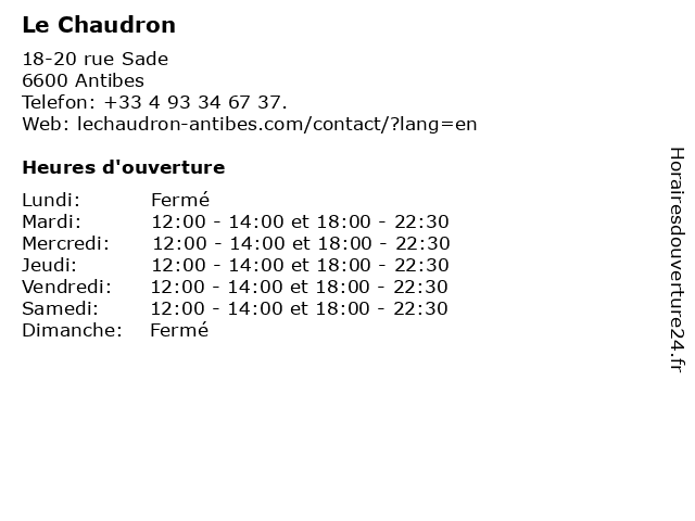 Jeudi | 12:00-14:00 et 18:00-22:30 |