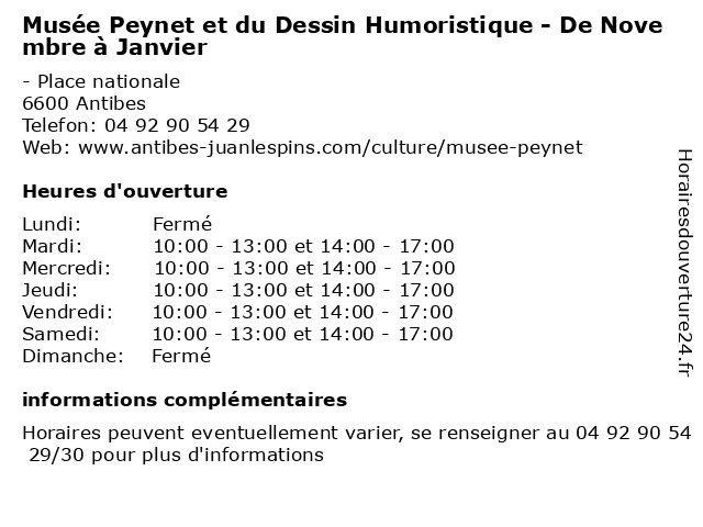 | Vendredi | 10:00-13:00 et 14:00-17:00 |