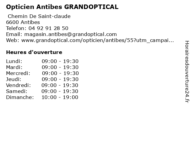 1 Opticien Antibes | Alain Afflelou (Distance: 0,03 km) Centre Commercial Carrefour, 06600 Antibes afflelou, alain, antibes, magasin de lunettes de soleil, magasin d’accessoires de mode, opticien, optométrie 2 Opticien GrandOptical Antibes (Distance: 0,03 km) Chemin de Saint-Claude, 06600 Antibes antibes, grandoptical, opticien 3 Opticien ANTIBES Générale d'Optique (Distance: 0,32 km) 2222 Route de Grasse, 06160 Antibes antibes, d'optique, examen de la vue, générale, lentilles de contact, lentilles progressives, lunette ray ban, lunettes, lunettes anti-lumière bleue, lunettes de conduite de nuit, lunettes de conduites de nuit, lunettes de soleil, lunettes de soleil pour enfant, lunettes de soleil pour femme, lunettes de soleil pour homme, lunettes de vue, lunettes de vue femme, lunettes de vue homme, lunettes progressives, opticien, opticien proche de chez moi, optique, sport à la vue, vérification de la vue 5 ACUITIS Opticien & Audioprothésiste Antibes (Distance: 0,51 km) 50 Voie Marie Fischer, 06600 Antibes acuitis, antibes, audiologiste, audioprothesiste, audioprothésiste, magasin d'appareils auditifs, magasin de lentilles de contact, magasin de lunettes de soleil, opticien, optometrie 6 Atol Mon Opticien (Distance: 2,67 km) 495 Route de la Mer, 06410 Biot atol, atol les opticiens, atol mon opticien, lentilles, lunettes de soleil, lunettes de vue, mon, opticien, opticien biot |