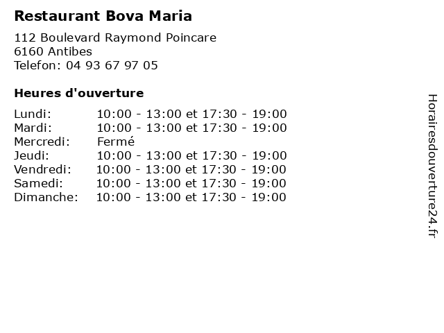 | Dimanche | 10:00-13:00 et 17:30-19:00 |
