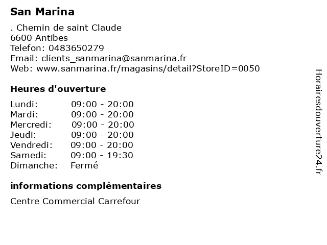 1 San Marina (Distance: 9,11 km) 20 Rue Meynadier, 06400 Cannes accessoires femme, chaussures, enfant, homme, marina, san, san marina 2 San Marina (Distance: 9,11 km) 45 Rue d'Antibes, 06400 Cannes accessoires, chaussures, enfant, femme, homme, marina, san, san marina 3 San Marina (Distance: 9,89 km) - Avenue Eugène Donadeï, 06700 Saint-Laurent-du-Var accessoires, chaussure, chaussures, femmes, hommes, italienne, marina, marque, mode, san 4 San Marina (Distance: 14,99 km) 809 Boulevard des Ecureuils, 06210 Mandelieu la Napoule cafe, chaussures, enfants, homme, lingerie, marina, mode femme, restaurant, san, service 5 San Marina (Distance: 15,18 km) - Boulevard Des Ecureuils, 06210 Mandelieu-la-Napoule accessoires femme, chaussures, enfant, homme, marina, san, san marina 6 San Marina (Distance: 17,07 km) 5 Rue Massena, 06000 Nice accessoires femme, chaussures, enfant, homme, marina, san, san marina |
