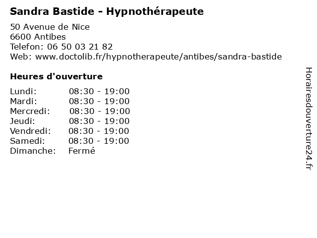 | Samedi | 08:30-19:00 |