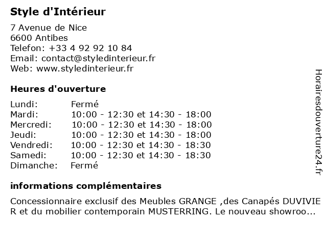 | Samedi | 10:00-12:30 et 14:30-18:30 |