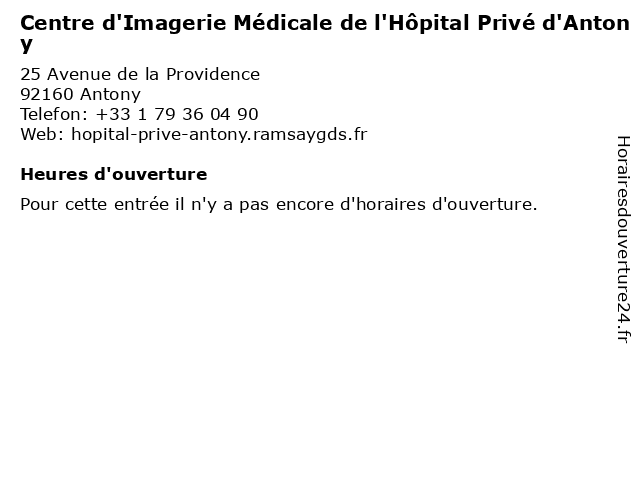 | Appeler Centre d'Imagerie Médicale de l'Hôpital Privé d'Antony | |