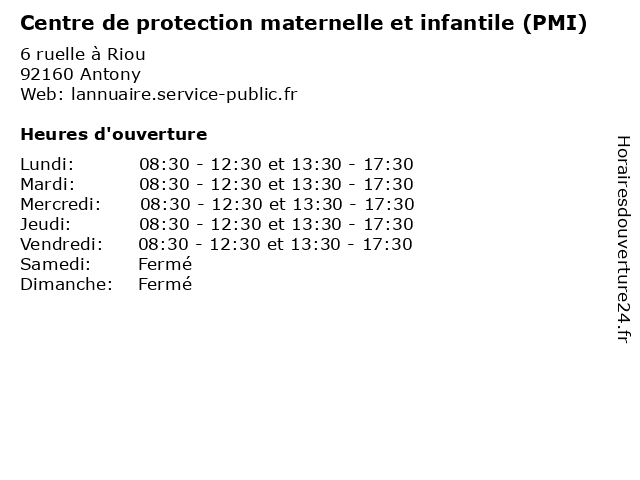 | Lundi | 08:30-12:30 et 13:30-17:30 |