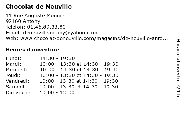 | Mardi | 10:00-13:30 et 14:30-19:30 |
