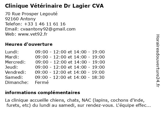 | Samedi | 09:00-12:00 et 14:00-18:30 |