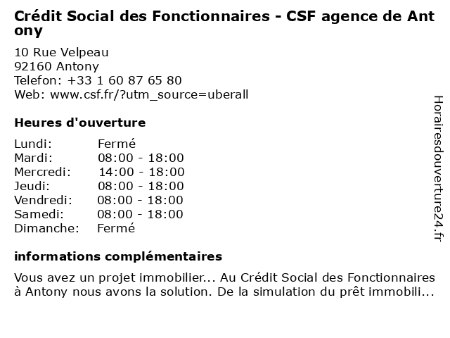 Termes de recherche pour Crédit Social des Fonctionnaires - CSF agence de Antony:de, des, agence, crédit, social, antony, fonctionnaires, csf |