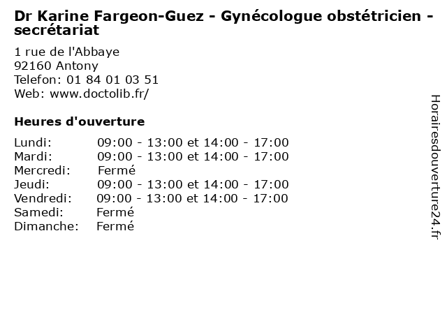 1 Dr Laurent Brun - Gynécologue obstétricien - secrétariat (Distance: 0,00 km) 1 rue de l'Abbaye, 92160 Antony brun, consultation, docteur, dr, gynécologue, laurent, med, médecin, médecine, obstétricien, secrétariat, traitement 2 Dr Brigitte Guerin Marchand - Gynécologue médical et obstétrique - secrétariat (Distance: 0,34 km) 1 Rue Velpeau, 92160 Antony brigitte, consultation, docteur, dr, et, guerin, gynécologue, marchand, med, médecin, médecine, médical, obstétrique, secrétariat, traitement 3 Laforest Hervé - Gynécologue (Distance: 2,64 km) 6 Avenue du Noyer Lambert, 91300 Massy docteur, gynécologue, hervé, laforest, medecins, sante 4 Dr Charles Michel Dray-Gynécologue (Distance: 7,21 km) - Avenue Jean Jaurès,, 92129 Montrouge charles, consultation, docteur, dr, dray, gynécologue, michel, santé 5 Dr Jean-Baptiste Le Cornec - Gynécologue (Distance: 7,21 km) 1 Avenue Jean Jaurès,, 92129 Montrouge baptiste, consultation, cornec, docteur, dr, gynécologue, jean, le, santé 6 Dr Louis-Dominique Van Egroo - Gynécologue - secrétariat (Distance: 7,30 km) 103 Rue Henri Barbusse, 92190 Meudon consultation, docteur, dominique, dr, egroo, gynécologue, louis, med, médecin, médecine, médical, secrétariat, traitement, van |