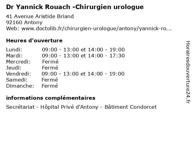 | Mardi | 09:00-13:00 et 14:00-17:30 |