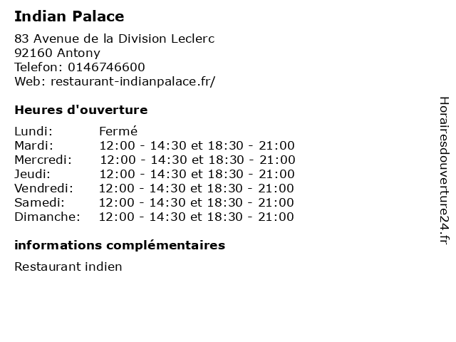 | Dimanche | 12:00-14:30 et 18:30-21:00 |
