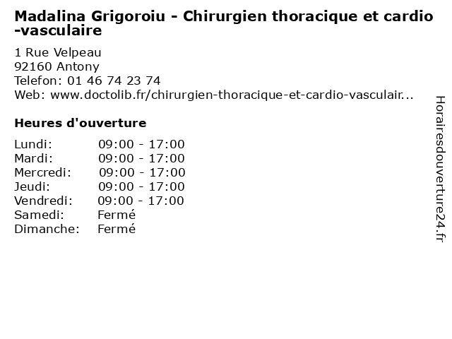 1 Emmanuel Brian - Chirurgien thoracique et cardio-vasculaire (Distance: 0,00 km) 1 Rue Velpeau, 92160 Antony brian, cardio, chirurgien, docteur, emmanuel, et, sante, soins, thoracique, vasculaire 2 Dr Henri lamas - Chirurgien vasculaire (Distance: 0,00 km) 1 Rue Velpeau, 92160 Antony chirurgie, chirurgien, docteur, dr, henri, lamas, médecin, vasculaire 3 Dr Stéphane Kovarsky - Chirurgien vasculaire (Distance: 0,00 km) 1 Rue Velpeau, 92160 Antony chirurgie, chirurgien, dr, general, kovarsky, soins, stéphane, vasculaire 4 Dr Hervé Borie - Chirurgien vasculaire (Distance: 0,00 km) 1 Rue Velpeau, 92160 Antony borie, chirurgie, chirurgien, dr, general, hervé, soins, vasculaire 5 Dr François Cormier - Chirurgien vasculaire (Distance: 2,93 km) 6 Avenue du Noyer Lambert, 91300 Massy chirurgien, cormier, dr, françois, médecin, médecine, médical, pharmaceutique, secrétariat, traitement, vasculaire 6 Dr Beltran Levy-Praschker - Chirurgien thoracique et cardio-vasculaire (Distance: 2,96 km) 6 Avenue du Noyer Lambert, 91300 Massy beltran, cardio, cardio-vasculaire, chirurgien, dr, et, levy, praschker, thoracique, vasculaire |