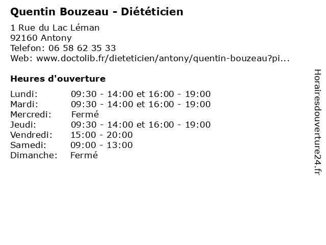 | Mardi | 09:30-14:00 et 16:00-19:00 |
