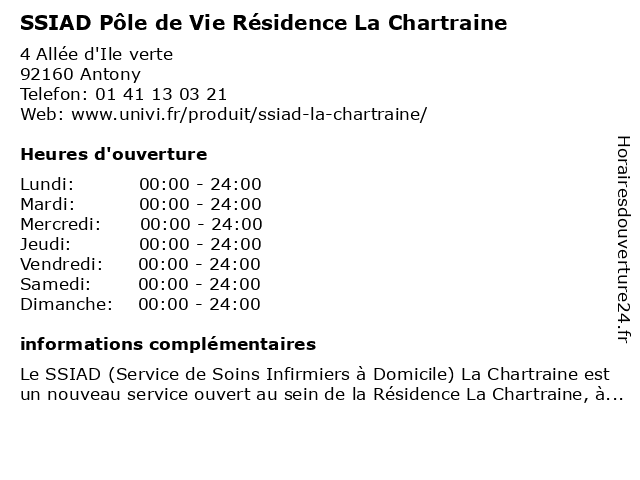 1 ESA Pôle de Vie La Chartraine (Distance: 0,00 km) 4 Allée d'Ile verte, 92160 Antony chartraine, de, domicile, esa, infirmiers, la, pôle, service, soins, vie 2 Résidence Jean-Zay (secrétariat ) (Distance: 0,41 km) 75 rue Léon Blum, 92160 Antony hébergement, jean, résidence, secrétariat, universitaire, zay 3 La Vie Claire (Distance: 1,22 km) 100 Avenue de la Division Leclerc, 92290 Châtenay-Malabry alimentation bio, claire, la, magasins bio, produits bio, vie 4 Dom&Vie (Distance: 1,98 km) 7 allée des Lilas, 91370 Verrières le Buisson aménagement, dom&vie, ergonomique 5 Or Haya Une Lumière de Vie (Distance: 2,30 km) 4 Rue de Fontenay, 92330 Sceaux caregivers houses, child care, de, family home, haya, home care, kindergartens, lumière, micro-nurseries, or, parental home, une, vie 6 Mairie - Services Enfance-Jeunesse, sports, vie associative et loisirs (Distance: 4,82 km) 2 rue Gallieni, 94230 Cachan associative, enfance, et, jeunesse, loisirs, mairie, services, sports, vie, vie associative et loisirs |