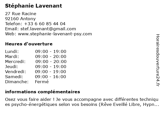 1 Stéphanie Dufant - Diététicienne (Distance: 1,13 km) 2 Boulevard Jean Jaurès, 94260 Fresnes cabinet, diététicien, diététicienne, diététique, dufant, medical, secrétariat, stéphanie 2 Stéphanie Broustal - Psychologue (Distance: 1,14 km) 5 Avenue Gallieni, 92160 Antony broustal, psy, psychiatre, psychologue, sante, soins, stéphanie 3 Stéphanie Dufant - Diététicien - secrétariat (Distance: 1,32 km) 14 Place Pierre et Marie Curie, 94260 Fresnes cabinet, diététicien, diététique, dufant, medical, secrétariat, stéphanie 4 Akessi Annette Stéphanie (Distance: 1,53 km) 86 Rue Adolphe Pajeaud, 92160 Antony akessi, annette, stéphanie 5 Dr Stéphanie Wang-Quiquempois - Orthodontiste - secrétariat (Distance: 3,77 km) 30 Rue de Fontenay, 92330 Sceaux consultation, docteur, dr, med, médecin, médecine, orthodontiste, quiquempois, secrétariat, stéphanie, traitement, wang 6 Dr Stéphanie Mamou Amzalag - Chirurgien-dentiste - secrétariat (Distance: 4,90 km) - Avenue du Luxembourg, 94320 Thiais amzalag, chirurgien, consultation, dentiste, docteur, dr, mamou, med, médecin, médecine, secrétariat, stéphanie, traitement |