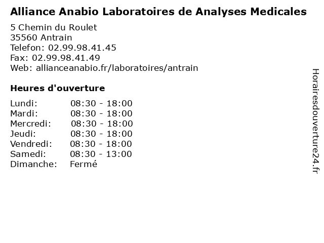 1 Alliance Anabio Laboratoires de Analyses Medicales (Distance: 0,00 km) 5 Chemin du Roulet, 35560 Antrain alliance, anabio, analyses, de, laboratoires, medicales, services 2 Alliance Anabio Laboratoires de Analyses Medicales (Distance: 31,99 km) s/n La Métairie, 35520 Melesse alliance, anabio, analyses, de, laboratoires, medicales, services 3 Alliance Anabio Laboratoires de Analyses Medicales (Distance: 33,20 km) 4 Avenue Mozart, 35830 Betton alliance, anabio, analyses, de, laboratoires, medicales, services 4 Alliance Anabio Laboratoires de Analyses Medicales (Distance: 34,77 km) 13 allée du Marché, 35235 Thorigne-Fouillard alliance, anabio, analyses, de, laboratoires, medicales, services 5 Alliance Anabio Laboratoires de Analyses Medicales (Distance: 38,00 km) s/n Avenue du chêne joli, 35530 Noyal Sur Vilaine alliance, anabio, analyses, de, laboratoires, medicales, services 6 Alliance Anabio Laboratoires de Analyses Medicales (Distance: 39,51 km) 4 rue de la Croix Connue, 35510 Cesson-Sevigne alliance, anabio, analyses, de, laboratoires, medicales, services |