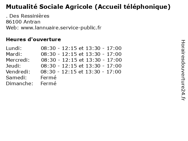 | Mardi | 08:30-12:15 et 13:30-17:00 |