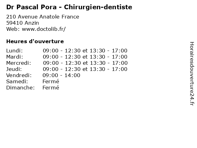 | Lundi | 09:00-12:30 et 13:30-17:00 |