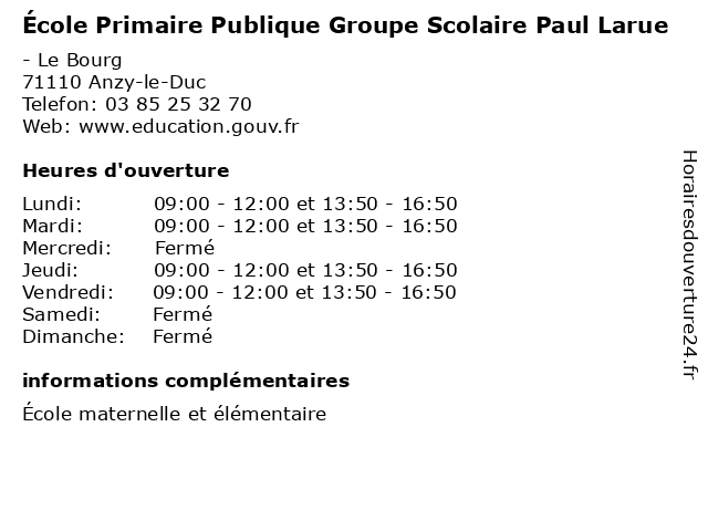| Mardi | 09:00-12:00 et 13:50-16:50 |