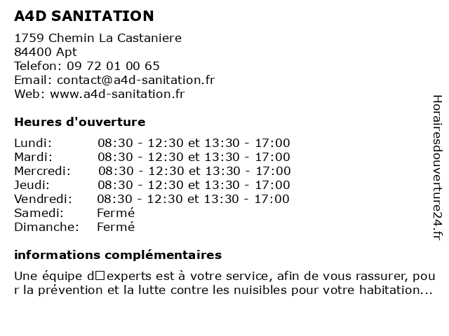 Lundi | 08:30-12:30 et 13:30-17:00 |