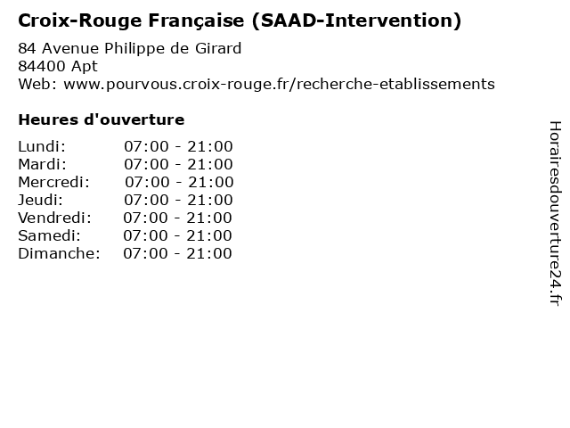 | Samedi | 07:00-21:00 |