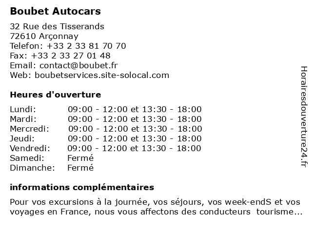 | Mercredi | 09:00-12:00 et 13:30-18:00 |
