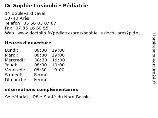 | Lundi | 08:30-19:00 |