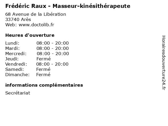 Termes de recherche pour Frédéric Raux - Masseur-kinésithérapeute:en, bien-être, forme, frédéric, kinésithérapie, remise, rééducation, masseur, kinésithérapeute, raux |