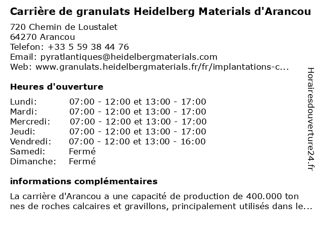 Termes de recherche pour Carrière de granulats Heidelberg Materials d'Arancou:de, carriere, materials, d'arancou, heidelberg, granulats |