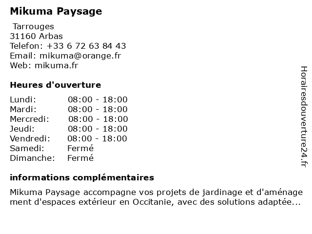 | Samedi | Fermé |