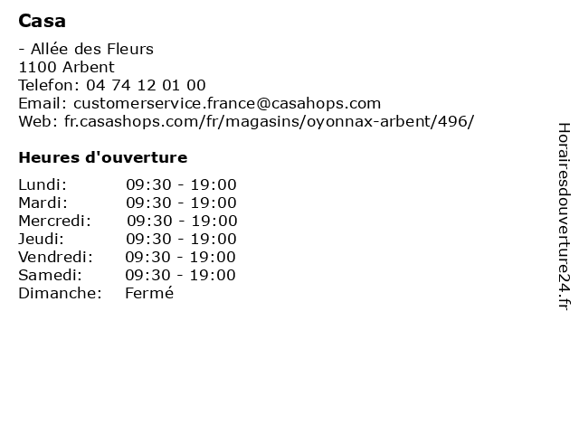 | Samedi | 09:30-19:00 |