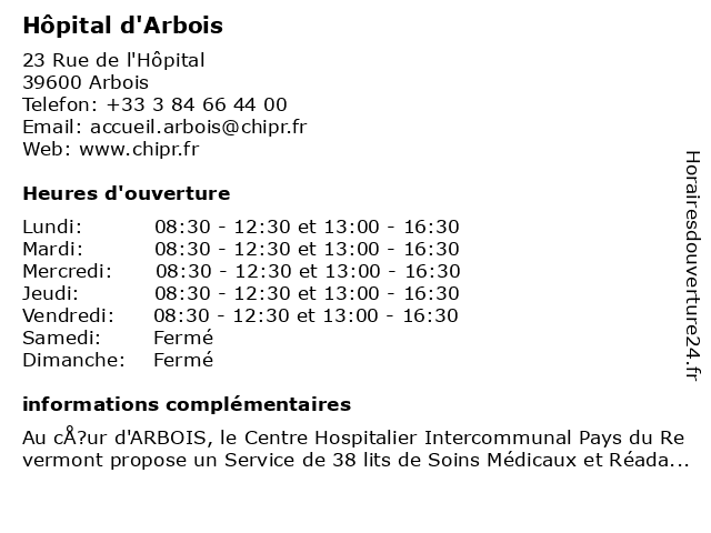 Termes de recherche pour Hôpital d'Arbois:hopital, d'arbois |