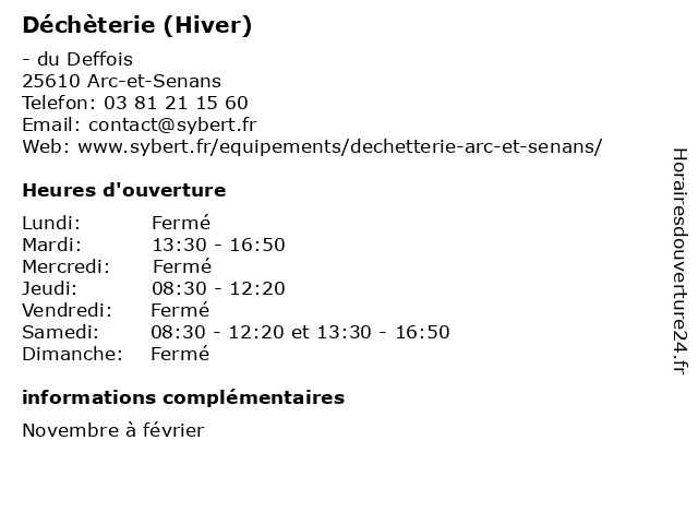 1 Déchèterie (hiver) (Distance: 12,31 km) 6, chemin du Tissage, 39700 Dampierre déchèterie, gravats, hiver, huiles usées, la réception des déchets et écocentres, les appareils électroménagers, les déchets verts, papier et carton en quantité 2 Déchèterie (Hiver) (Distance: 13,20 km) n/c Route d'Abbans-Dessous, 25320 Byans-sur-Doubs bennes, débarras, déchèterie, détritus, hiver, ordures 3 Déchèterie (hiver) (Distance: 14,05 km) 18 route de Dole, 39380 Mont-sous-Vaudrey déchèterie, gravats, hiver, huiles usées, la réception des déchets et écocentres, les appareils électroménagers, les déchets verts, papier et carton en quantité 4 Déchèterie (Hiver) (Distance: 14,68 km) - Sur les Vallières, 25440 Myon bennes, débarras, déchèterie, détritus, hiver, ordures 5 Déchèterie (Hiver) (Distance: 16,49 km) - ZI Bracon - Champtave, 39110 Bracon déchèterie, gravats, hiver, huiles usées, la réception des déchets et écocentres, les appareils électroménagers, les déchets verts, papier et carton en quantité 6 Déchèterie (Hiver) (Distance: 16,93 km) - Ancienne Route nationale 83, 25440 Lavans-Quingey bennes, débarras, déchèterie, détritus, hiver, ordures |