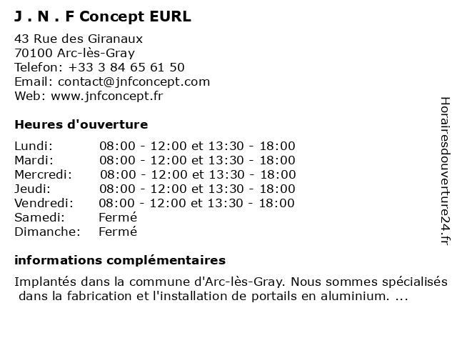 | Lundi | 08:00-12:00 et 13:30-18:00 |