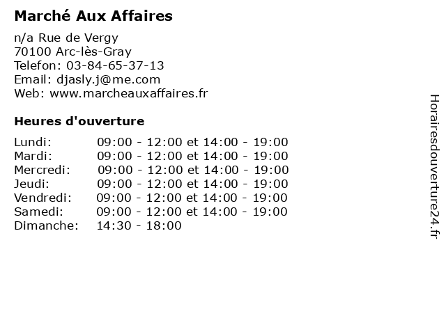 | Samedi | 09:00-12:00 et 14:00-19:00 |