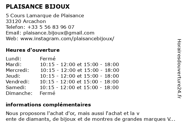 2 Bijoux Cailloux (Distance: 3,17 km) . Rue Lagrua, 33260 La Teste de Buch bijoux, cafe, cailloux, chaussures, enfants, homme, lingerie, mode femme, restaurant, service 3 Marine Plaisance Service (Distance: 7,15 km) 37 Route du Cap Ferret, 33950 Lège-Cap-Ferret marine, plaisance, service 4 Eliot Bijoux (Distance: 10,59 km) 2 Avenue de Bordeaux, 33510 Andernos-les-Bains bijoux, eliot, fancy, gold plated, jewelry, necklaces, sterling silver 925, watches 5 E.Leclerc Manège A Bijoux (Distance: 12,87 km) route de Bordeaux, 33740 Ares bijoutier, bijoux, création de bijoux, e.leclerc, magasin de montres, manège, réparation de montres 6 E. Leclerc - Le Manège à Bijoux (Distance: 13,09 km) . Route de Bordeaux, 33740 Ares alliances, bangues, bijoux, boucles, chaines, e., le, leclerc, manège, mode |