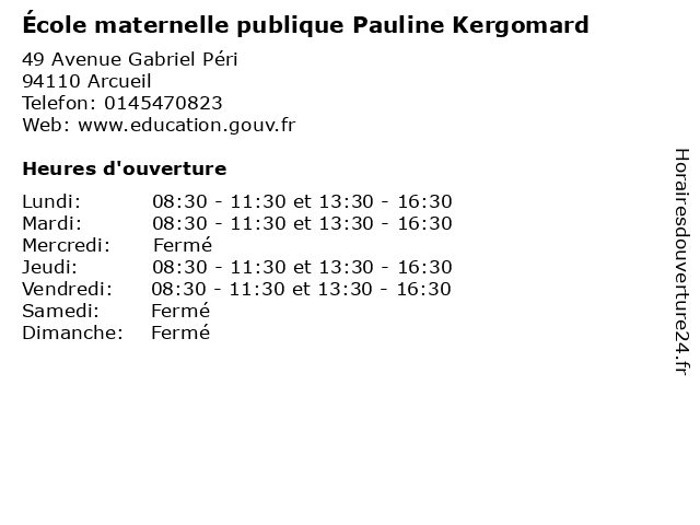 | Mardi | 08:30-11:30 et 13:30-16:30 |
