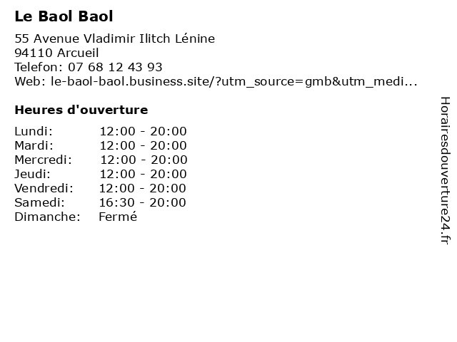 | Lundi | 12:00-20:00 |