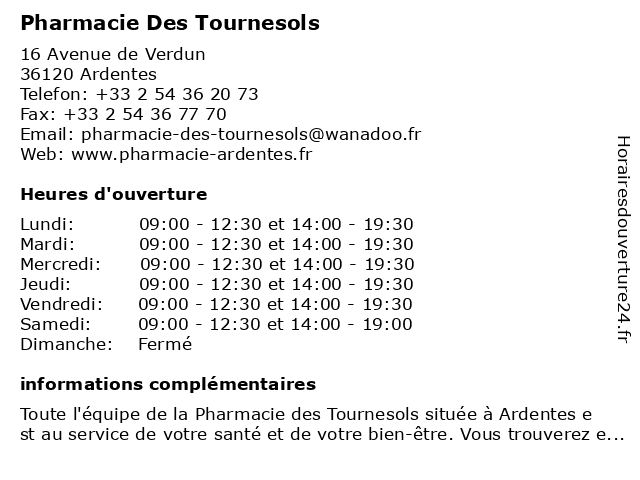 | Mardi | 09:00-12:30 et 14:00-19:30 |