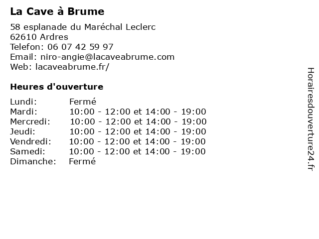 | Mercredi | 10:00-12:00 et 14:00-19:00 |