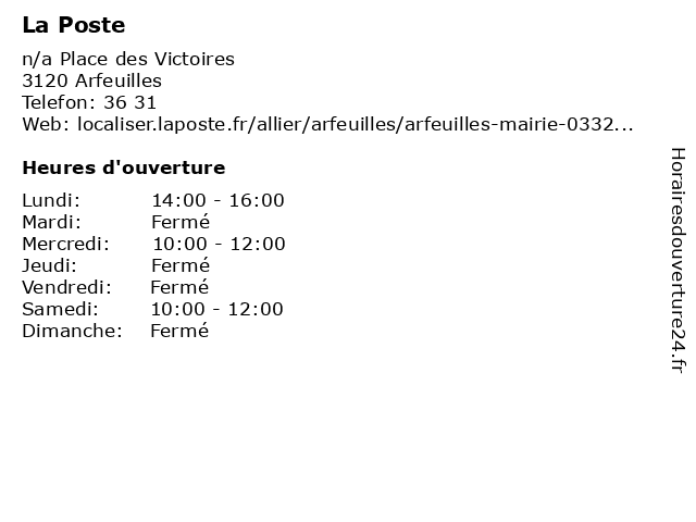 1 La Poste (Distance: 5,86 km) n/a Place Alphonce Corre, 03250 Châtel-Montagne agence, assurance, banque, banque postale, bureau de poste, chronopost, colis, courrier, dps, expéditions internationales, la, point, postale, poste, relais, timbres, téléphonie, ups, western union 2 La Poste (Distance: 6,25 km) n/a Le Bourg, 03120 Le Breuil agence, assurance, banque, banque postale, bureau de poste, chronopost, colis, courrier, dps, expéditions internationales, la, point, postale, poste, relais, timbres, téléphonie, ups, western union 3 La Poste (Distance: 10,48 km) - Rue Francisque Driffort, 03250 Le Mayet-de-Montagne agence, assurance, banque, banque postale, bureau de poste, chronopost, colis, courrier, dps, expéditions internationales, la, point, postale, poste, relais, timbres, téléphonie, ups, western union 5 La Poste (Distance: 13,76 km) 1 rue de la Vieille Porte, 03130 Montaiguet-en-Forez agence, assurance, banque, banque postale, bureau de poste, chronopost, colis, courrier, dps, expéditions internationales, la, point, postale, poste, relais, timbres, téléphonie, ups, western union 6 La Poste (Distance: 14,04 km) 36 Rue du Bourg, 03300 Molles agence, assurance, banque, banque postale, bureau de poste, chronopost, colis, courrier, dps, expéditions internationales, la, point, postale, poste, relais, timbres, téléphonie, ups, western union |